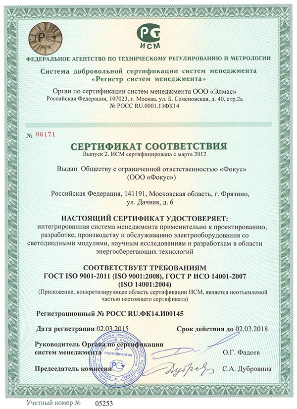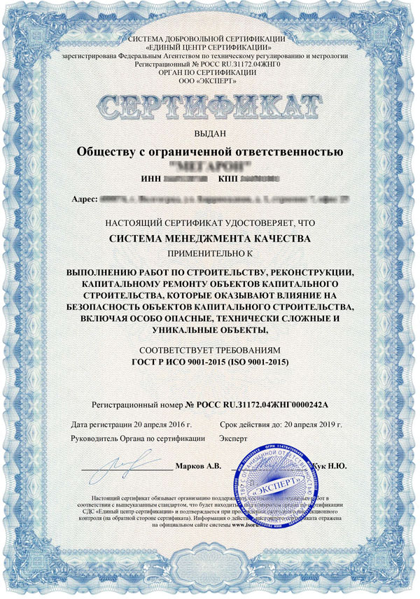 Сертификат ISO9001– это документ, который подтверждает факт проведения оценкименеджмента качествана предприятии по международному стандарту ISO 9001. Есть российский аналог стандарта – ГОСТР ИСО 9001/2015.